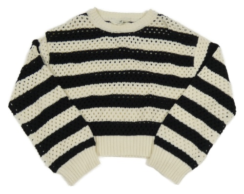 Smetanovo-čierny pruhovaný perforovaný crop sveter H&M