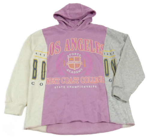 Lila-sivo-biela oversize mikina s nápisom a kapucňou Primark