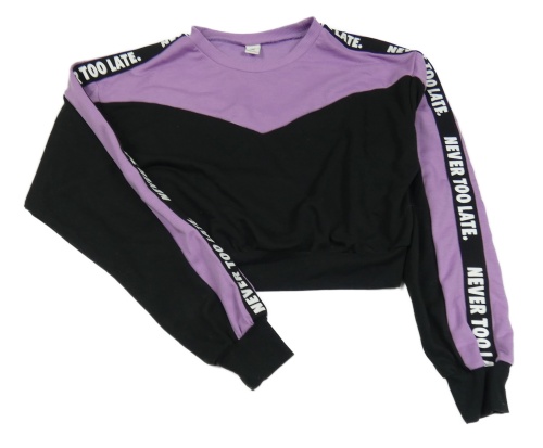 Čierno-fialová crop mikina s pruhom s nápismi SHEIN
