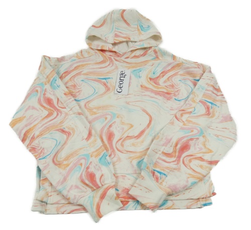 Nové - bielo-farebná vzorovaná crop mikina s kapucňou George