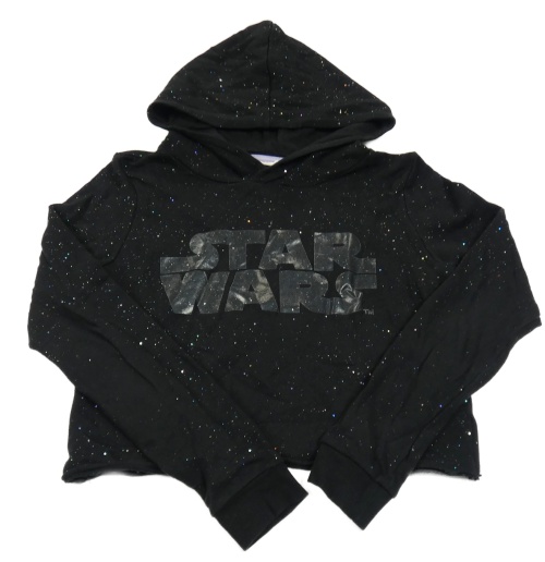 Čierna trblietavá crop mikina so Star Wars a kapucňou