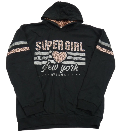 Čierna mikina s nápismi a srdiečkom a cvokmi a pruhmi a kapucňou LC WaIKIKI