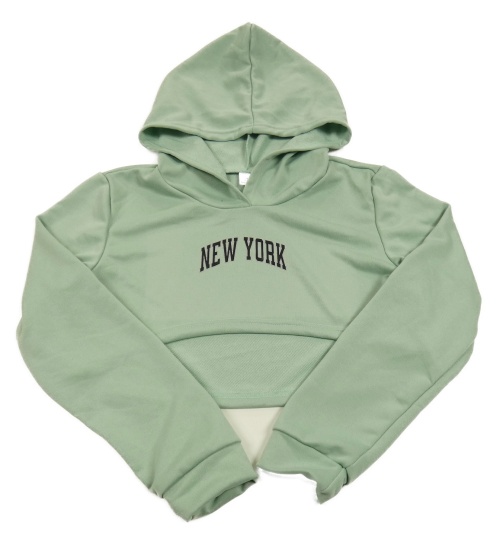 Svetlozelená crop mikina s nápisom a kapucňou