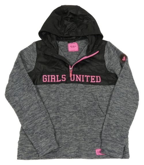 Sivo-čierna fleecovo/šusťáková mikina s nápisom a kapucňou