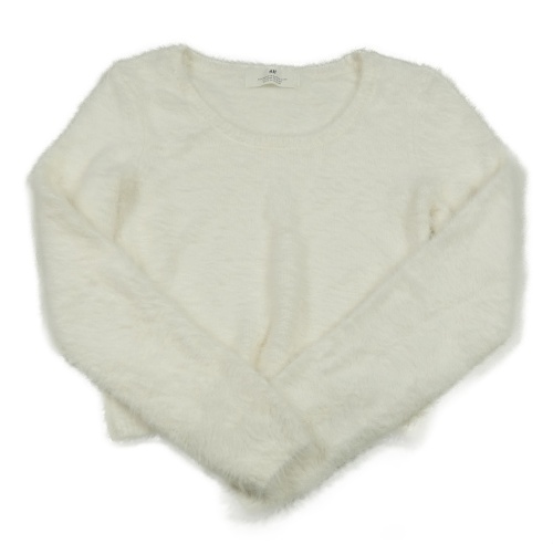 Biely chlpatý crop sveter H&M