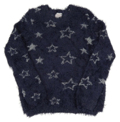 Tmavomodro-sivý chlpatý sveter s hviezdami Pocopiano