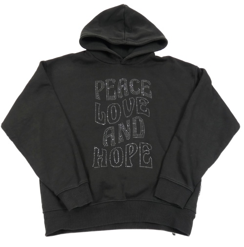 Čierna mikina s nápisem z kamínků a kapucňou