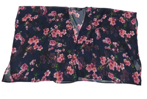 Tmavomodro-ružový kvetovaný šifónový ľahký cardigan New Look