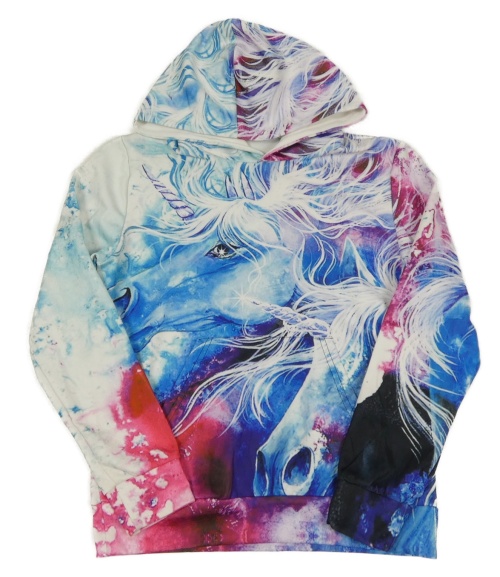 Bielo-modro-ružová vzorovaná mikina s kapucňou