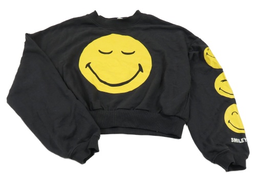 Tmavosivá crop mikina so smajlíkmi H&M