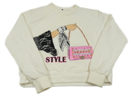 Smotanová crop mikina s kabelkou a kamienkami