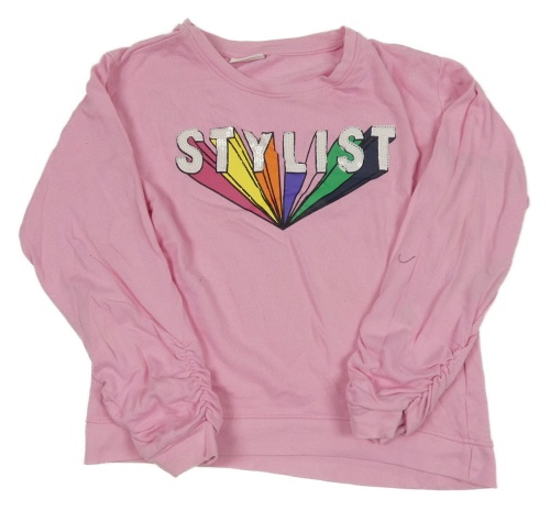 Svetloružová mikina s nápisom a flitrami Stop+go
