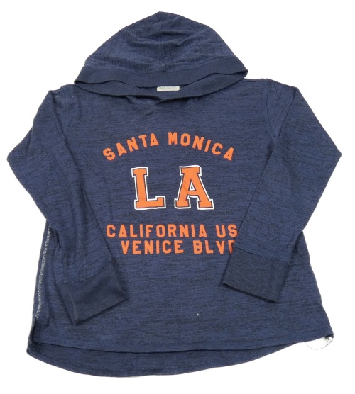 Tmavomodrý melírovaný pletený sveter s nápismi a kapucňou H&M