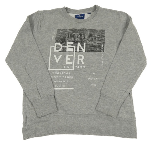 Sivá melírovaná mikina s potiskem města a nápismi TOM TAILOR