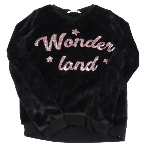 Čierna chlpatá mikina s nápisem z flitrů H&M