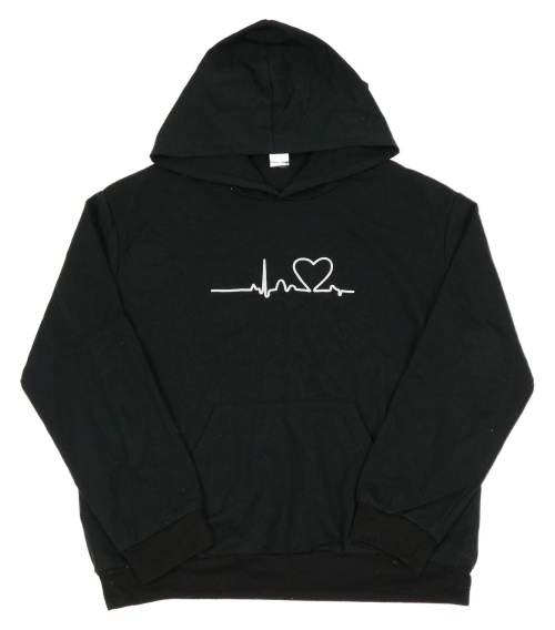 Čierna mikina so srdiečkom a vreckom a kapucňou