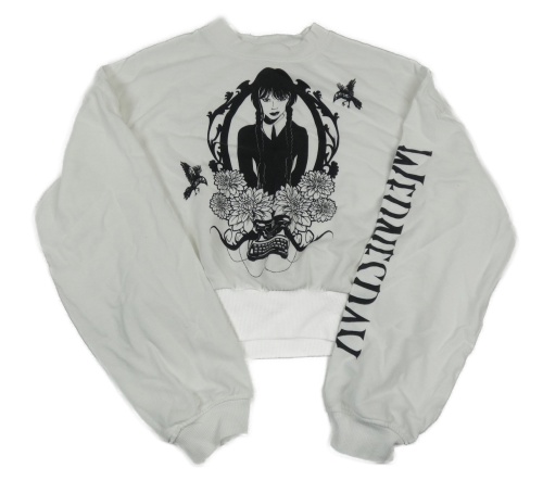 Biela crop mikina s Wednesday H&M