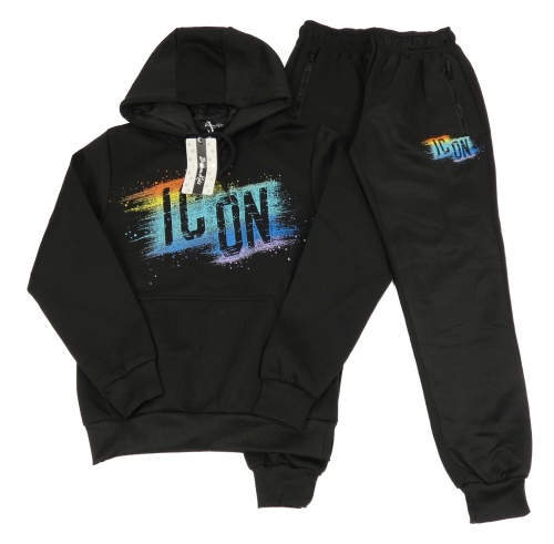 Nové - 2set - Čierna mikina s nápisom s nápisom a kapucí + tepláky