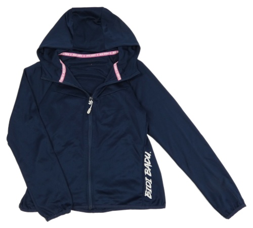 Tmavomodrá športová prepínaci mikina s nápisom a kapucňou