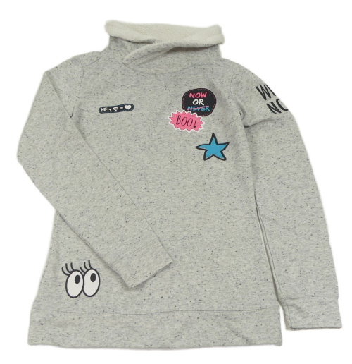 Sivá melírovaná mikina s hviezdičkou a očima a nápismi a stojačikom Page one young