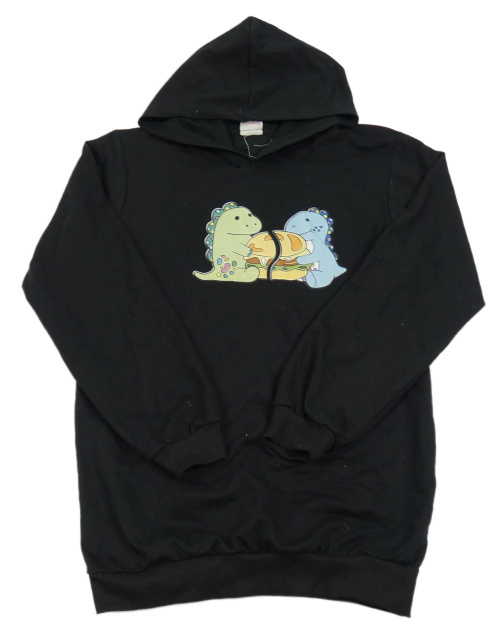 Čierna slabá mikina s dinosaurami a kapucňou foanja