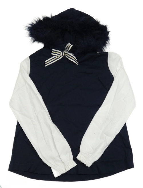 Tmavomodro-biela mikina s kapucňou a halenkovými rukávy vel.176