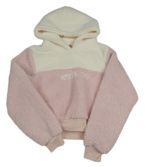 Svetloružová -smotanová huňatá crop mikina s nápisom a kapucňou