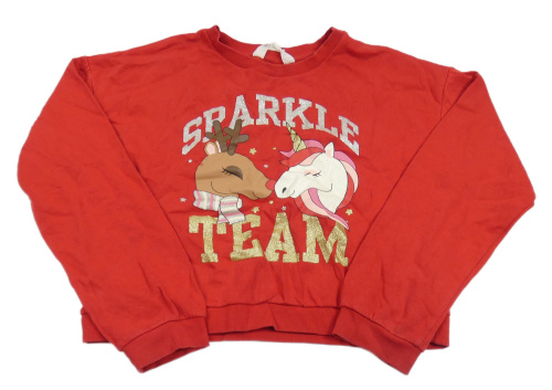 Červená crop mikina so sobom a jednorožcom H&M