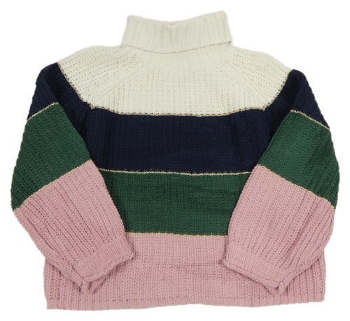Bielo-tmavomodro/zeleno-ružový rebrovaný žinylkový oversize rolák M&S