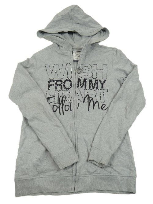 Sivá melírovaná prepínaci mikina s nápismi a kamienkami a kapucňou C&A