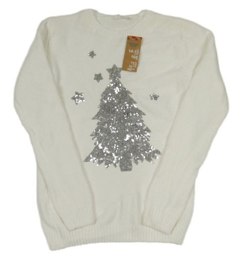 Nové - Biely žinylkový sveter s vánočním stromkem z flitrů PRIMARK