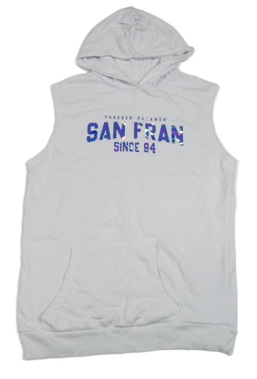 Biela tepláková vesta s metalickými nápisy a vreckom a kapucňou C&A