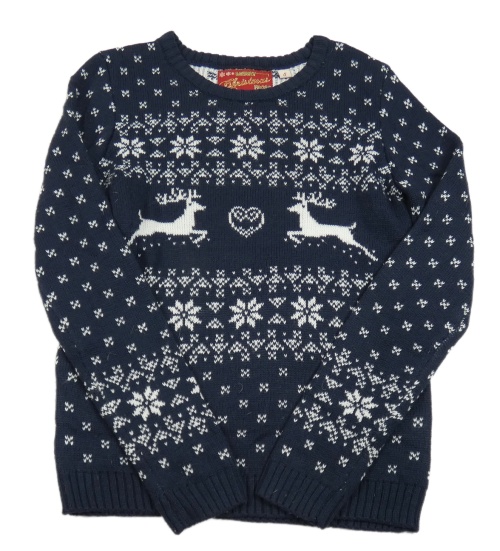 Tmavomodrý sveter s vánočním motívom