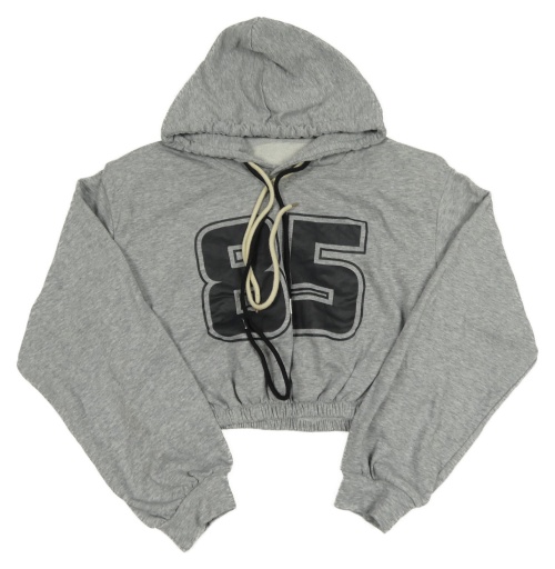 Sivá melírovaná crop mikina s číslom a kapucňou