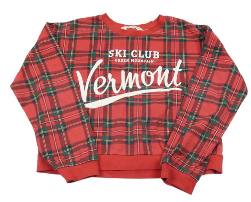 Červeno-farebná kockovaná crop mikina s nápisom H&M