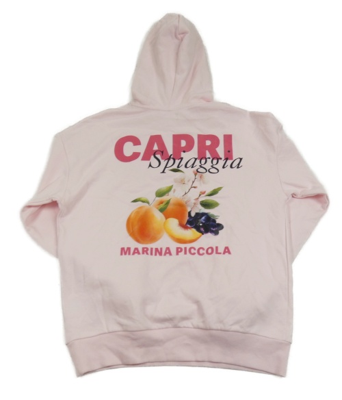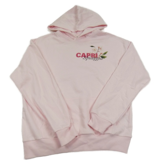 Svetloružová mikina s nápismi a větvičkou a vreckom a kapucňou H&M