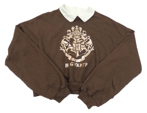 Tmavohnedá crop mikina s erbem - Harry Potter a golierikom H&M