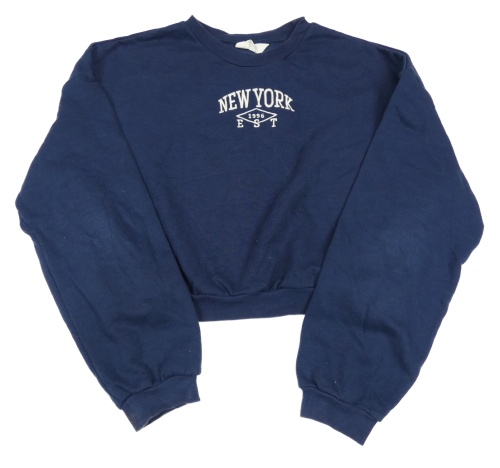 Tmavomodrá crop mikina s nápisom H&M
