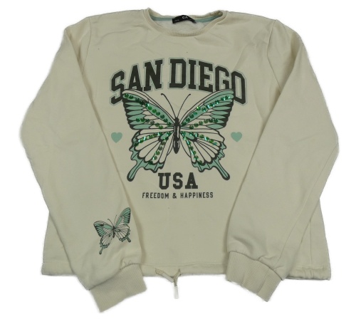 Smotanová crop mikina s nápismi a motýlkem z flitrů C&A