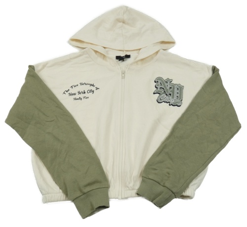 Smetanovo-khaki crop prepínaci mikina s nápismi a kapucňou New Look