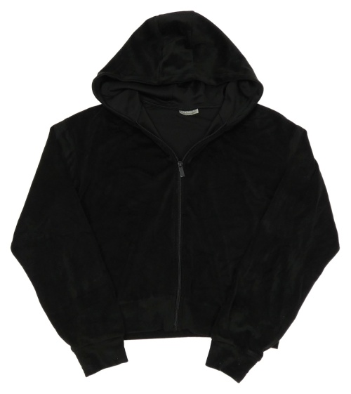 Čierna zamatová crop mikina s kapucňou