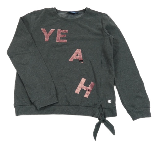 Tmavosivá melírovaná mikina s písmeny z překlápěcích flitrů Tom Tailor