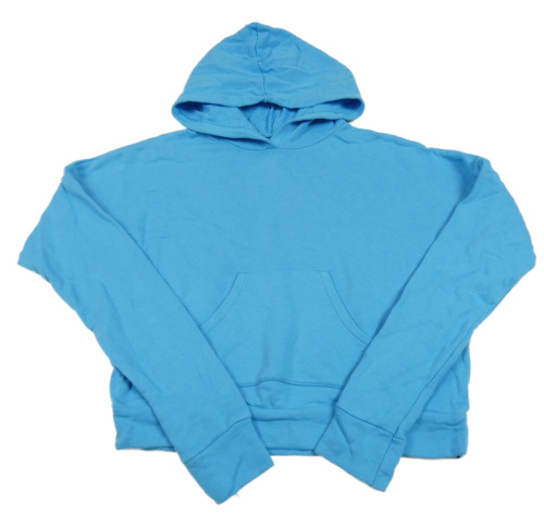 Tyrkysová crop mikina s klokankou a kapucňou