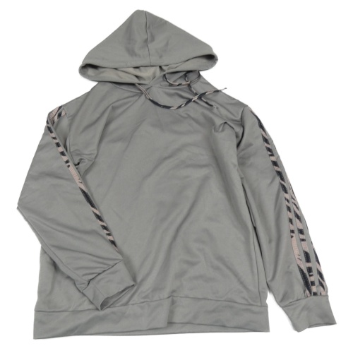 Sivá mikina s pruhy na rukávech a kapucňou