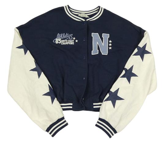 Tmavomodro-smotanová baseballová crop mikina s písmenem H&M