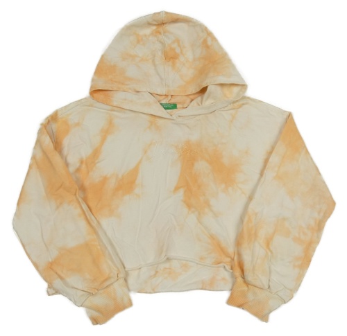 Bielo-oranžová batikovaná crop mikina s kapucňou Benetton