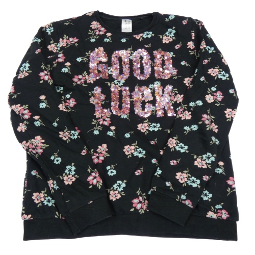 Čierna kvetovaná mikina s nápisem z flitrů C&A