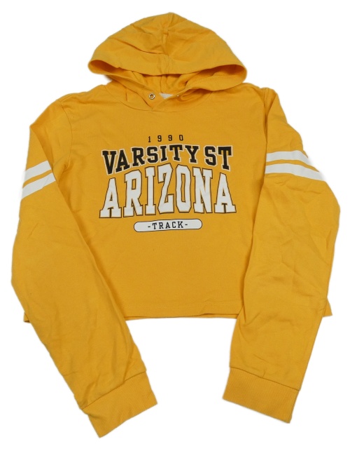 Horčicová crop mikina s nápismi a kapucňou H&M