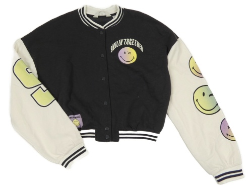 Tmavošedo-smotanová baseballová crop mikina so smajlíkmi a pruhmi H&M