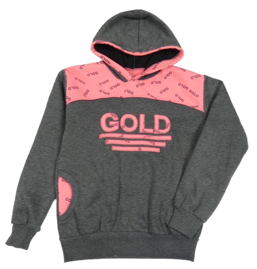 Sivo-neónově ružová mikina s nápismi a kapucňou